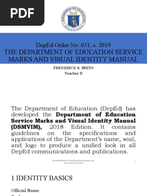 The Department of Education DepEd has developed the Department of Education Service Marks and Visual Identity Manual DSMVIM 2018 Edition.